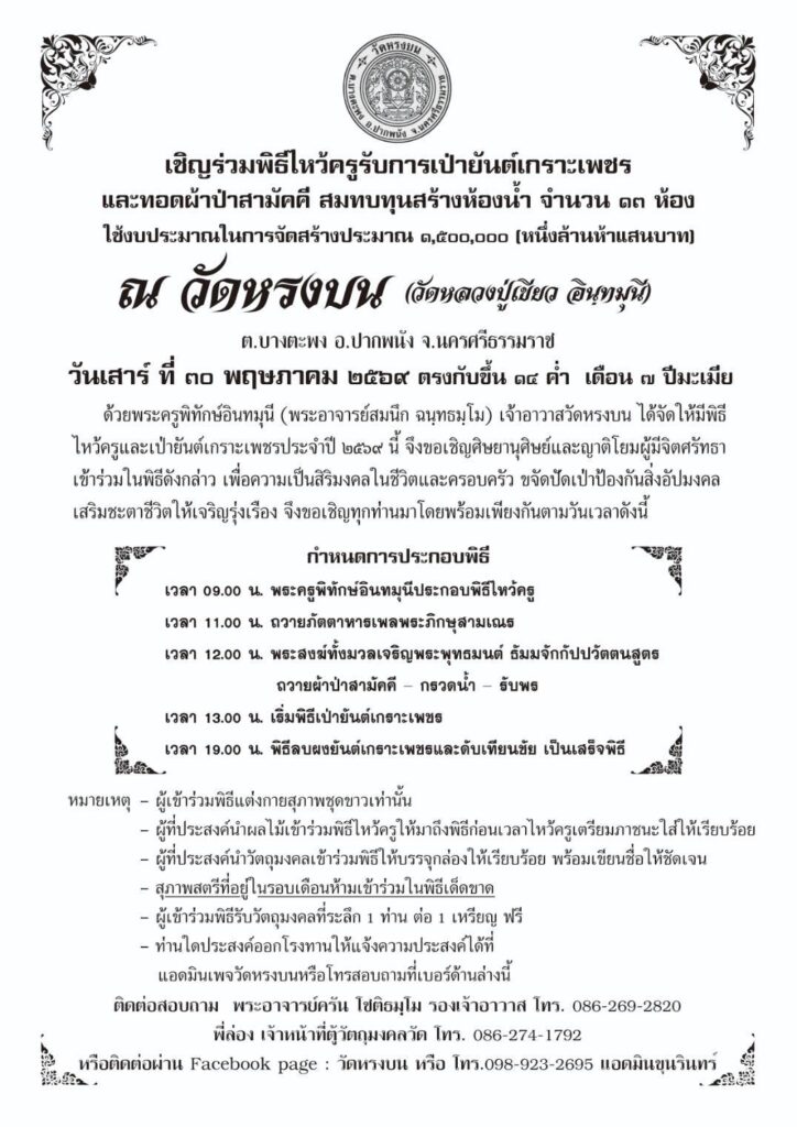 ประกาศวัดหรงบน ที่ ๑/๒๕๖๘