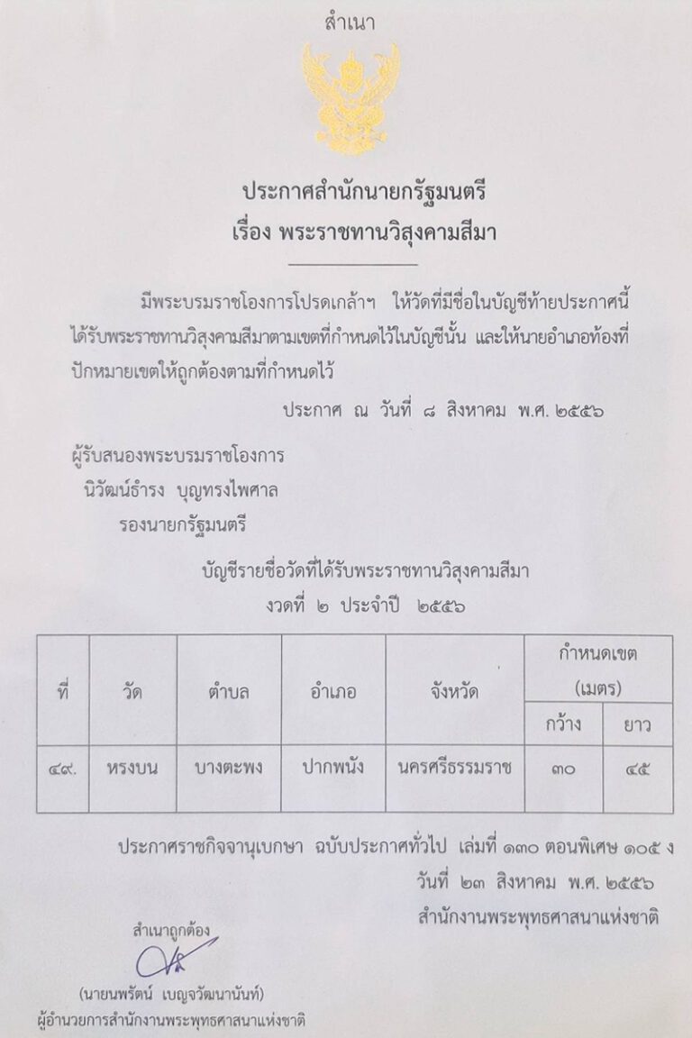 เมื่อ วันที่ ๘ สิงหาคม พ.ศ.๒๕๕๖ เขตวิสุงคามสีมา กว้าง ๓๐ เมตร ยาว ๔๕ เมตร